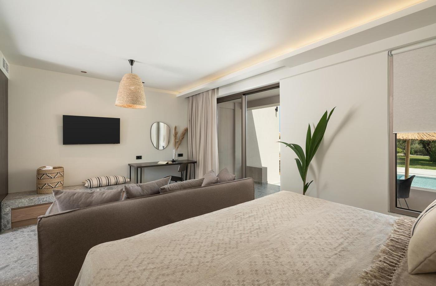 Deluxe Double Room with Extra Bed. Guests will have a special experience as this double room features a pool with a view. Offering free toiletries and bathrobes, this double room includes a private bathroom with a shower, a hairdryer and slippers. The spacious air-conditioned double room offers a flat-screen TV with streaming services, a private entrance, soundproof walls, a minibar as well as garden views. The unit offers 2 beds. ;