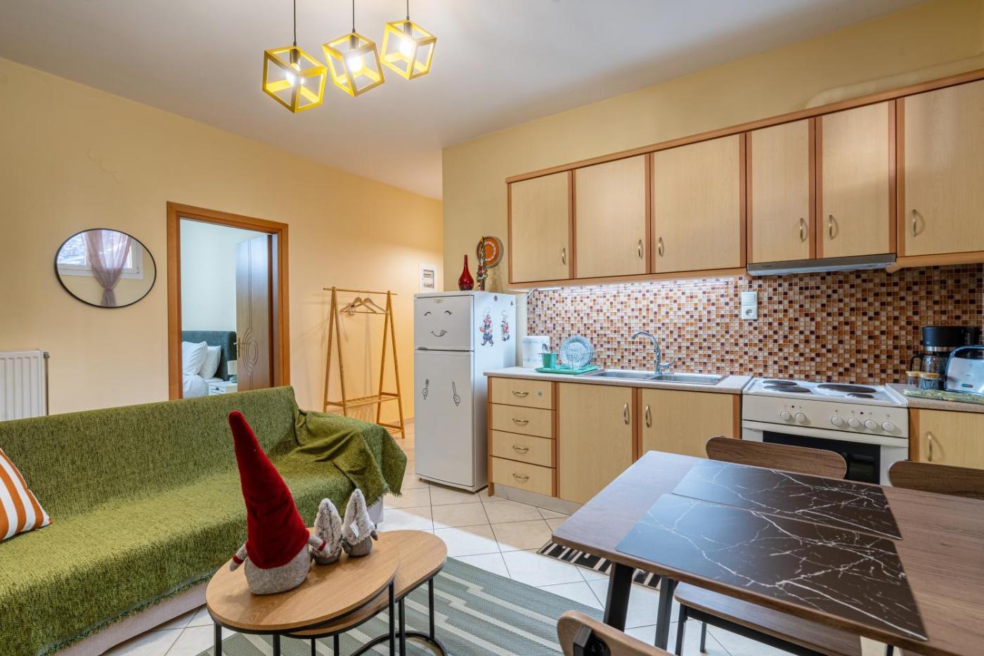 One-Bedroom Deluxe Apartment. Boasting a private entrance, this apartment comes with 1 living room, 1 separate bedroom and 1 bathroom with a bath and a hairdryer. The apartments kitchen is available for cooking and storing food. The apartment features a washing machine, a seating area, a wardrobe, a sofa and a flat-screen TV. The unit has 2 beds.