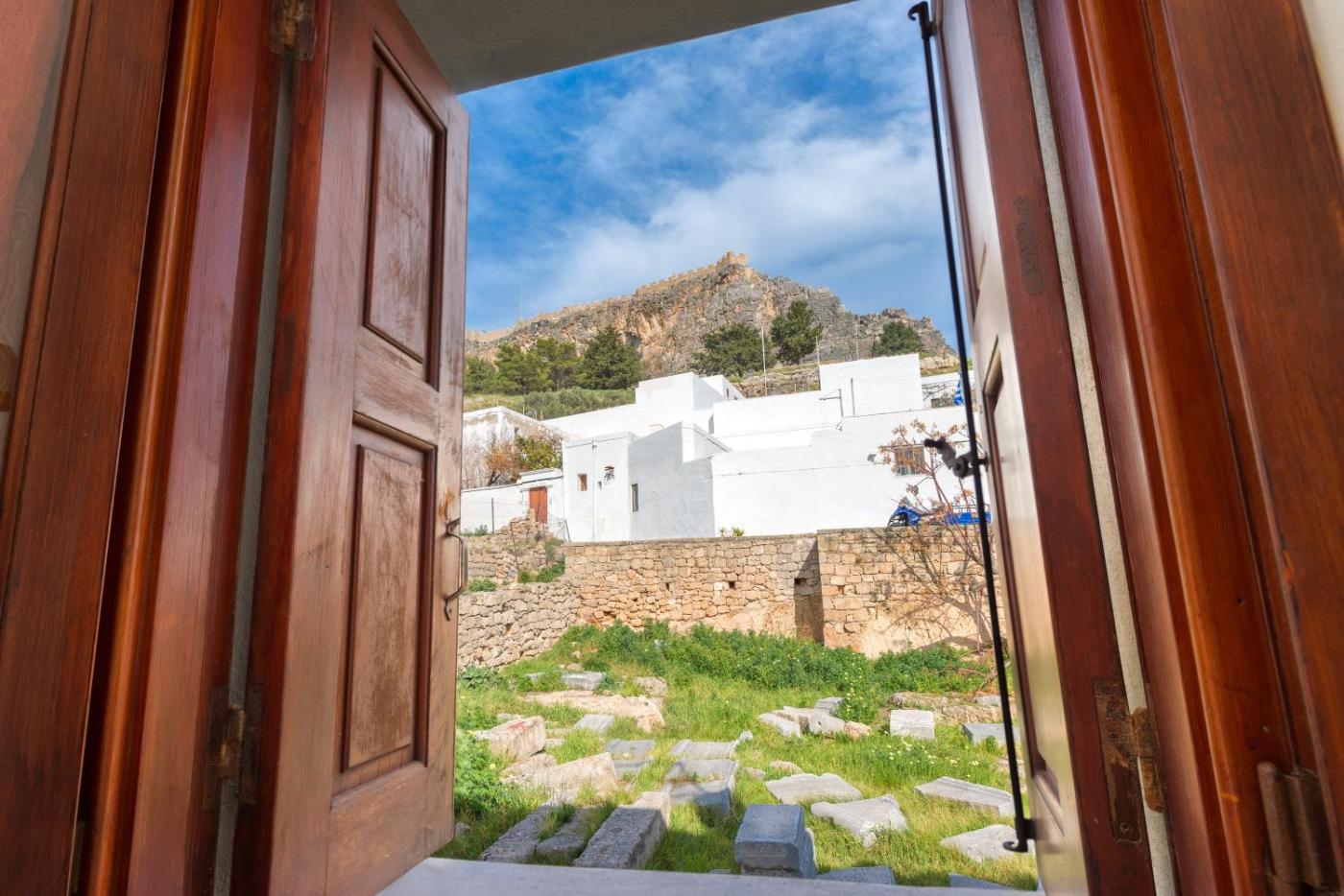 Lindos Citrin Studio with Acropolis View. This apartment has a kitchenware, smart TV and tilemarble floor. Cocomat mattresses and pillows are available. ;