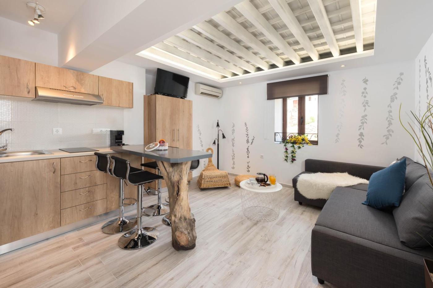 Lindos Emerald Apartment. This modernly designed apartment from now on a new fully renovated design and facilities ,a kitchenette, dining area, and 2 smartTVs, one in the bedroom and one in the living room. Cocomat mattresses and pillows are available.